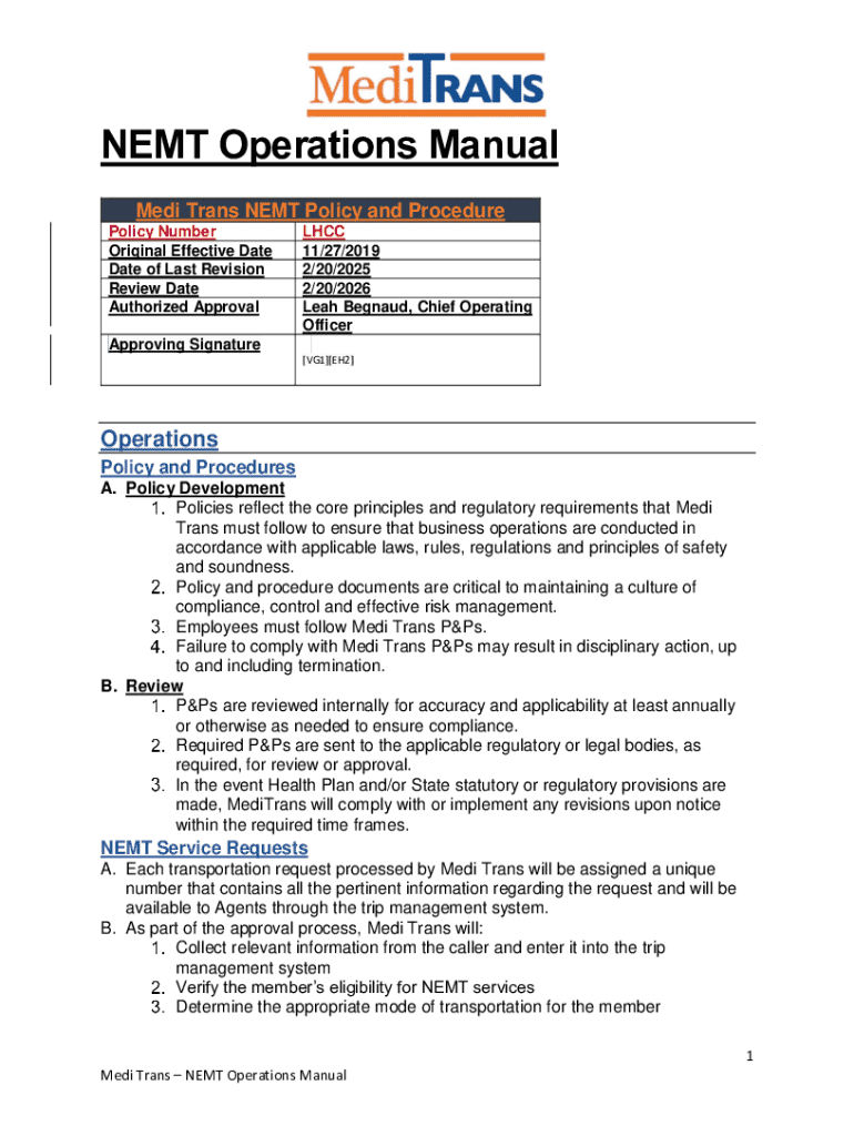 The NEMT Operations Manual serves as a comprehensive guide for managing transportation services effectively. This manual outlines best practices, protocols, and guidelines that all stakeholders must adhere to for the successful operation of NEMT. Its purpose is to provide a clear understanding of how to deliver services safely, efficiently, and in compliance with local, state, and federal regulations.