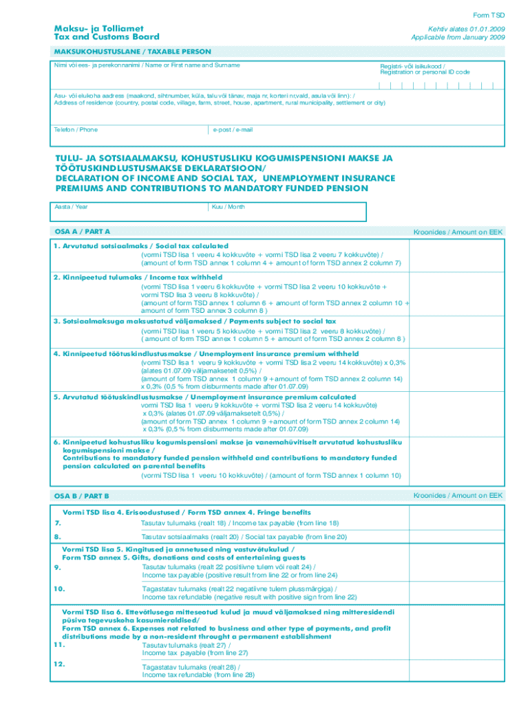 Vorm, millega deklareeritakse tulumaks, sotsiaalmaks, töötuskindlustusmaksed ja kohustusliku kogumispensione maksed. Sellel vormil on erinevad osad erinevate maksude ja tasude arvutamiseks.