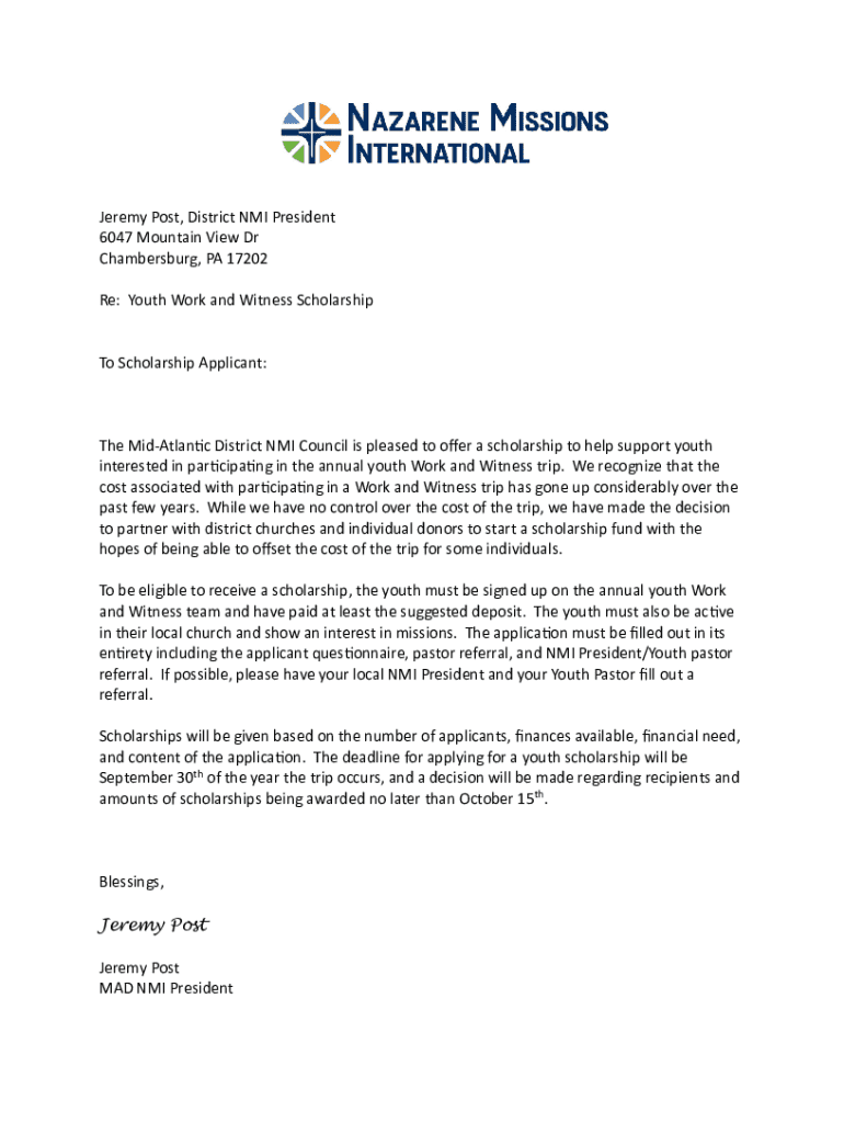 Get the free Nmi Scholarship Application Form