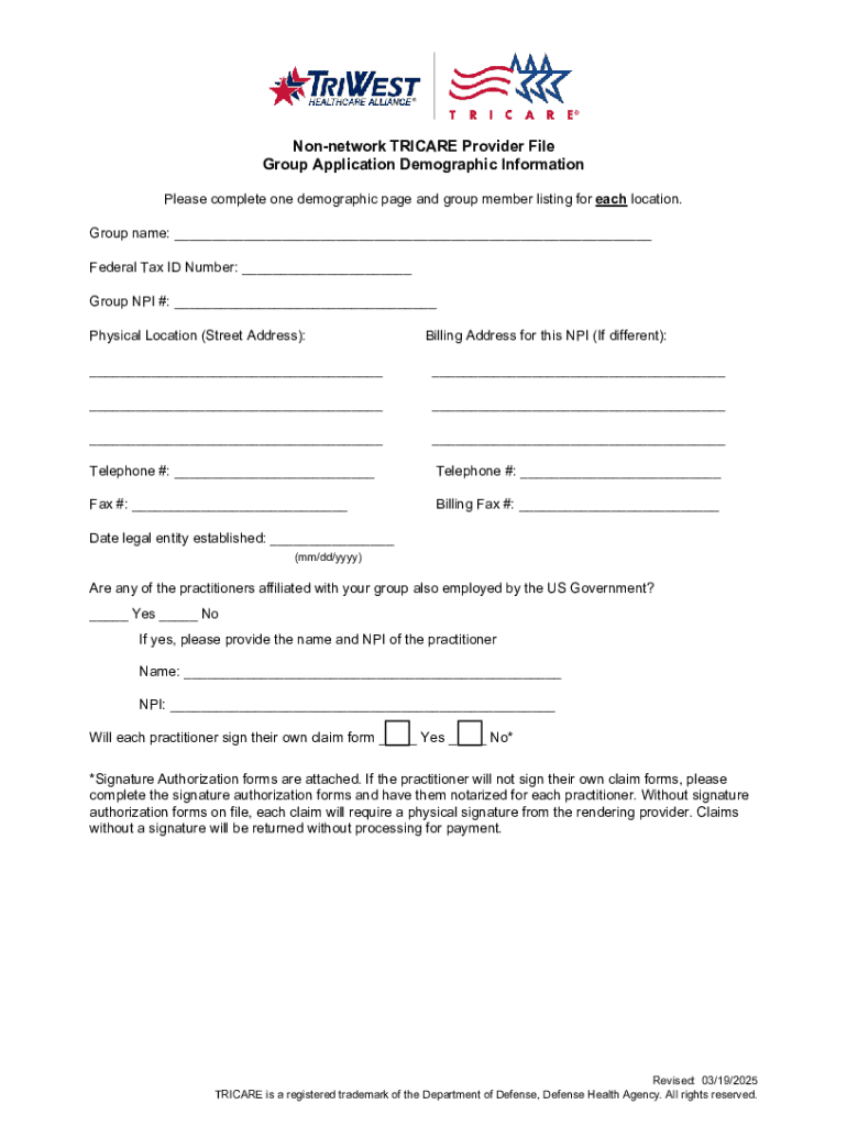 The Non-Network Tricare Provider File Form is a crucial document for health care providers who operate outside the Tricare network. This form serves a specific purpose: it allows these non-network providers to submit claims for payment for services rendered to eligible Tricare beneficiaries. For beneficiaries, this form is essential as it facilitates access to healthcare services even when services are received from non-network providers.