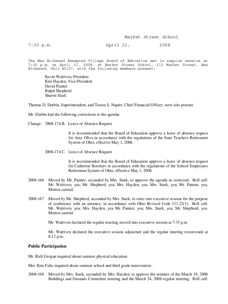 Get the free New Richmond Exempted Village Board of Education Meeting Minutes