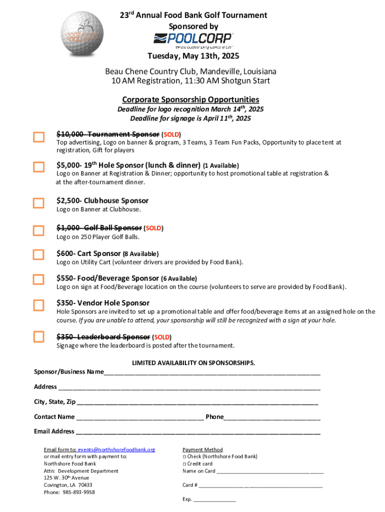 Sponsorship not only elevates your brand's profile among participants but also assures a commitment to community welfare. Benefits include logos on event materials, recognition during the tournament, and promotion through social media channels. To secure a sponsorship, interested parties can complete a dedicated sponsorship form and reach out directly for further inquiries.