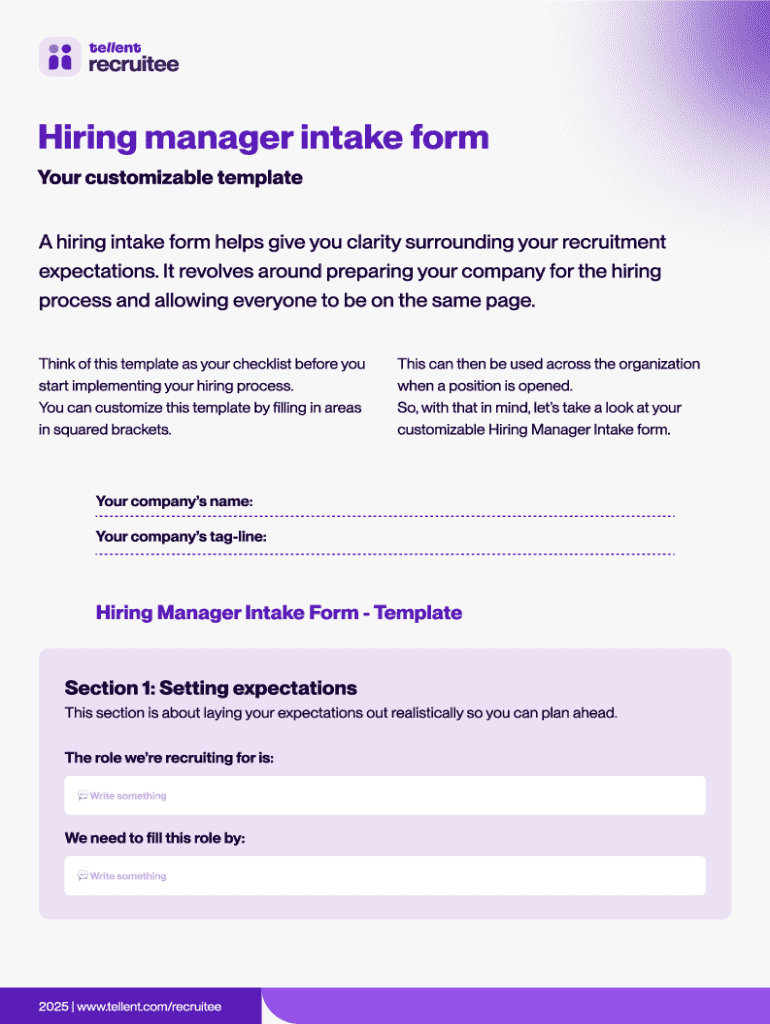 Get the free Hiring Manager Intake Form