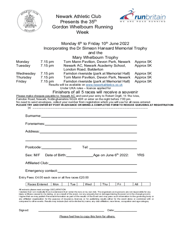 Get the free Newark Athletic Club Presents the 38th Gordon Whelbourn ...