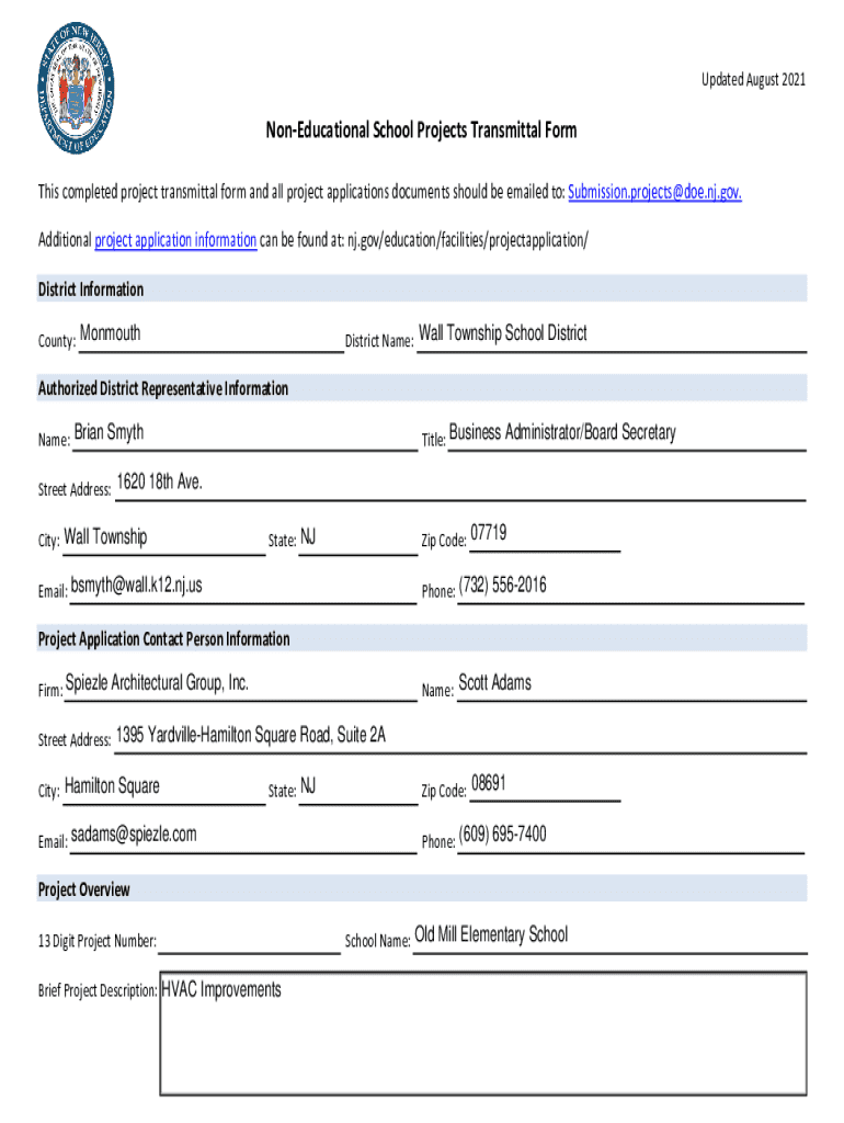 A non-educational school projects transmittal form serves as the backbone for managing various projects outside the traditional educational scope within school environments. Defined as a formal document, its primary purpose is to facilitate the streamlined exchange of project-related information among stakeholders. By clearly outlining the specifics of each project, this form enhances communication and ensures project clarity, allowing for proper oversight and resource allocation.
