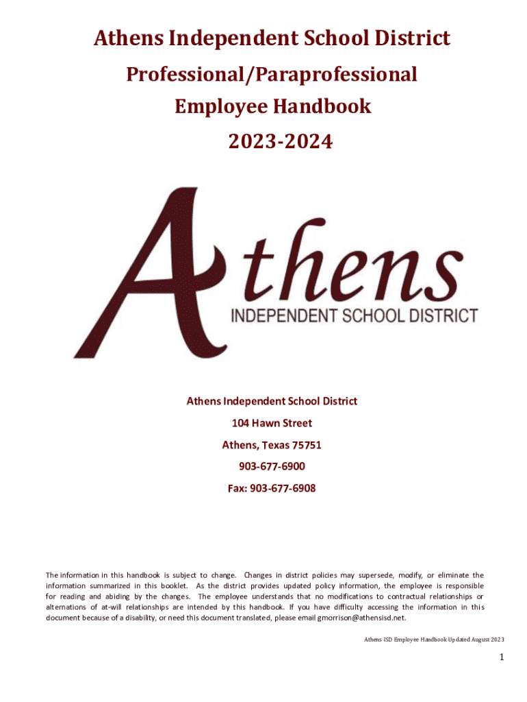 Get the free Athens Independent School District Professional/paraprofessional Employee Handbook
