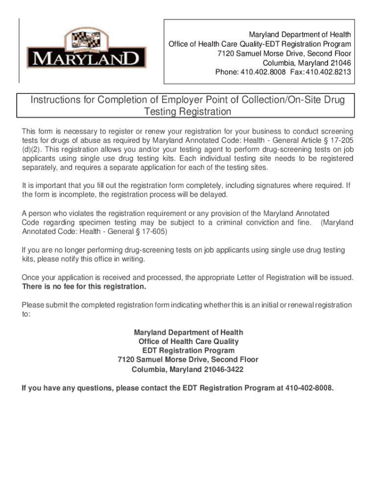 Get the free Employer Point of Collection/on-site Drug Testing Registration