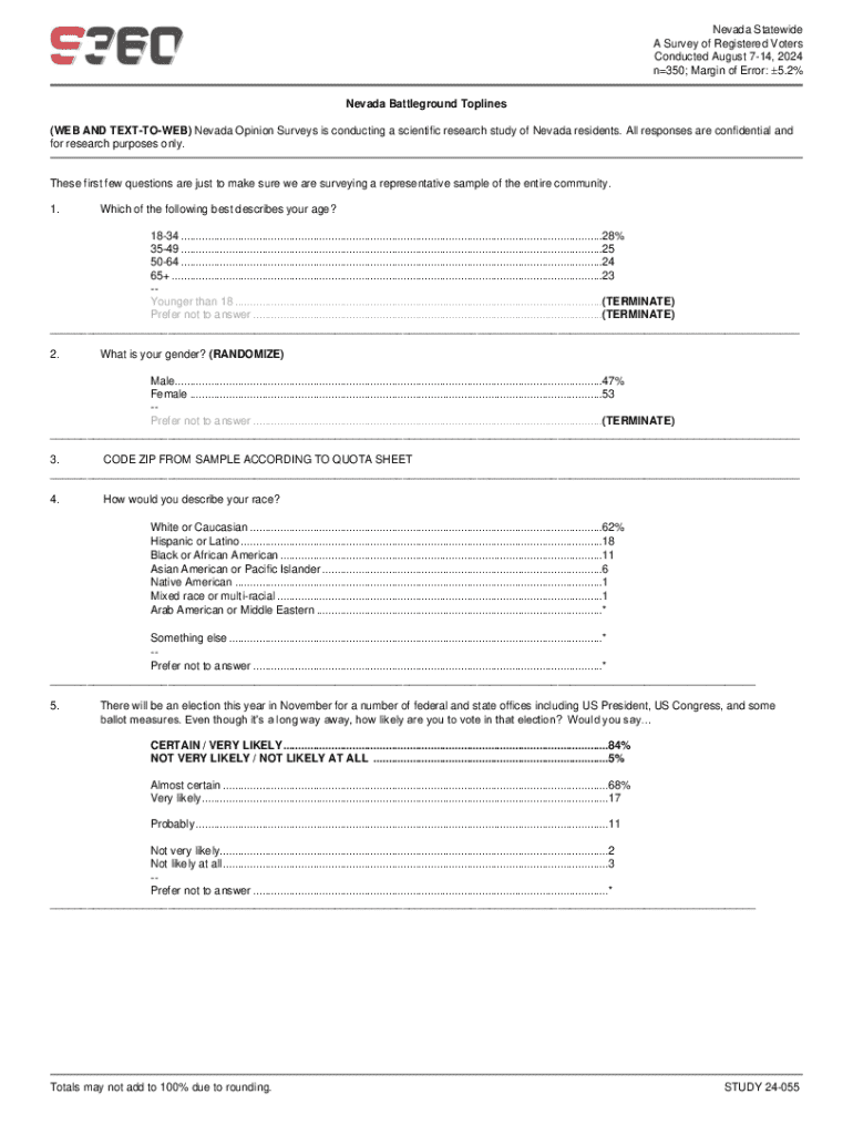 Get the free Nevada Statewide a Survey of Registered Voters