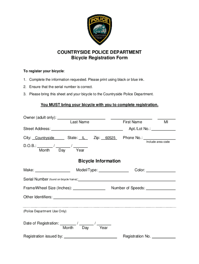 Before diving into the registration form, gathering all the necessary information is vital. You will need personal identification details, which often include your name, address, and phone number. Additionally, providing detailed specifications about your bicycle is crucial—common requirements include the make, model, and serial number of the bike. Proof of ownership, such as a purchase receipt or warranty, may also be necessary.