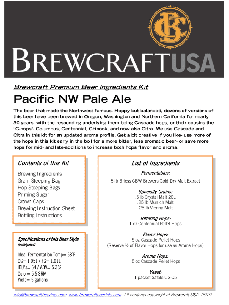 Get the free Brewcraft Premium Beer Ingredients Kit