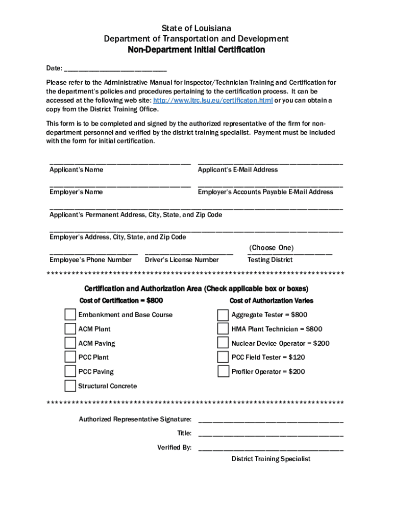 Get the free Non-department Initial Certification