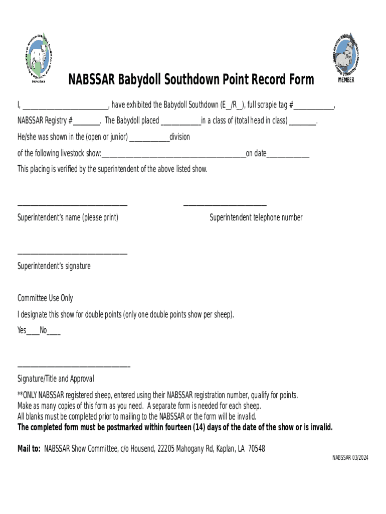 What is Nabssar Babydoll Southdown Point Record Form?