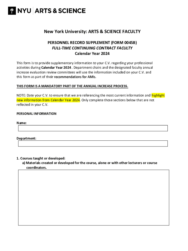 Get the free New York University: Arts & Science Faculty Personnel Record Supplement (form 0045b)...