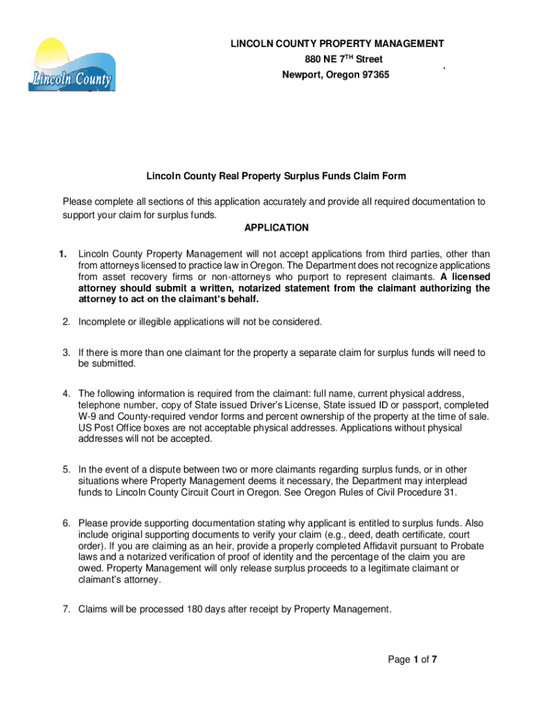 Get the free Lincoln County Real Property Surplus Funds Claim Form