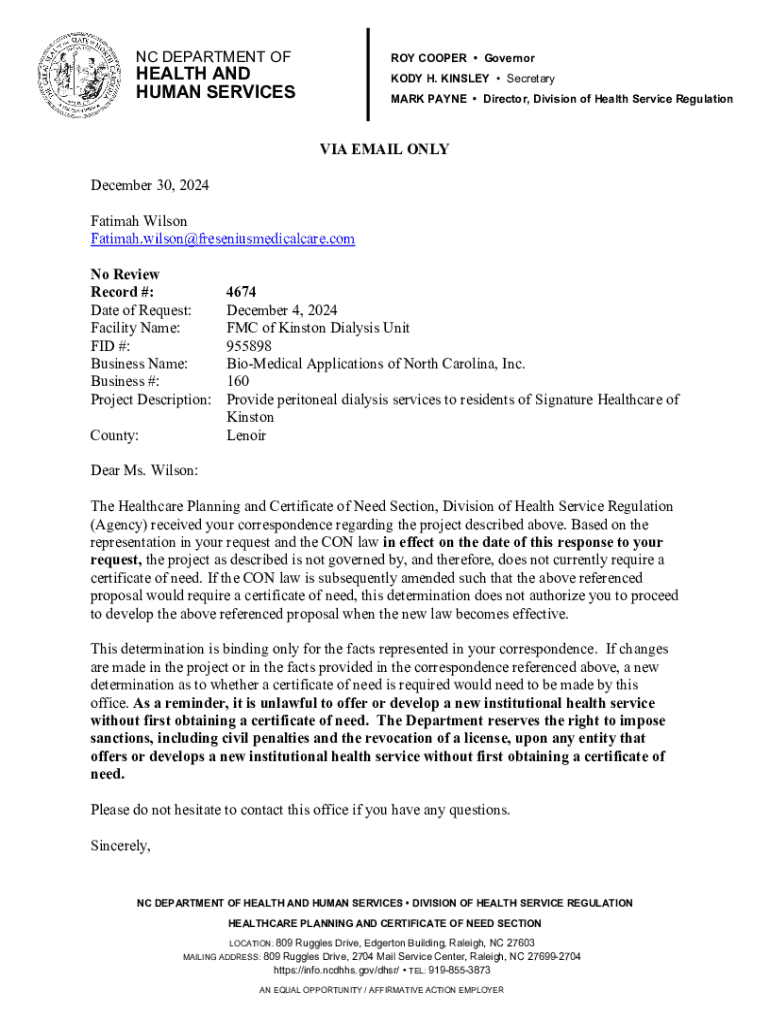 Get the free Nc Department of Health and Human Services Certificate of Need Response