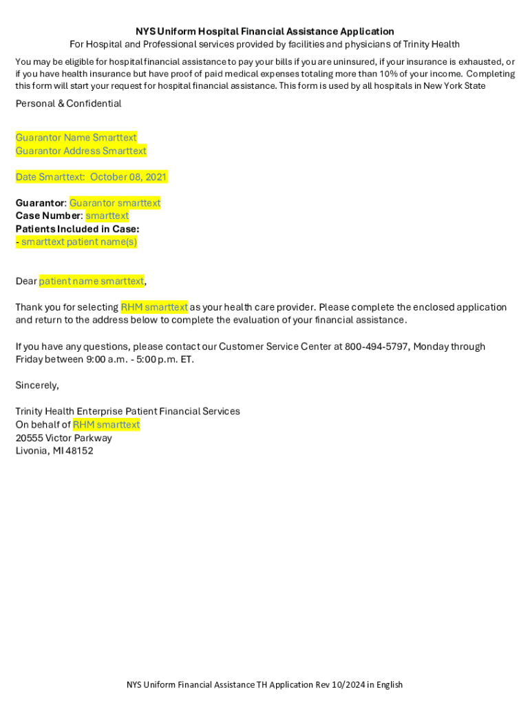 Get the free Nys Uniform Hospital Financial Assistance Application