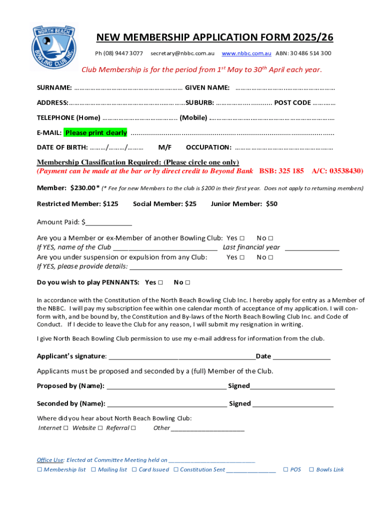 Get the free New Membership Application Form 2025/26