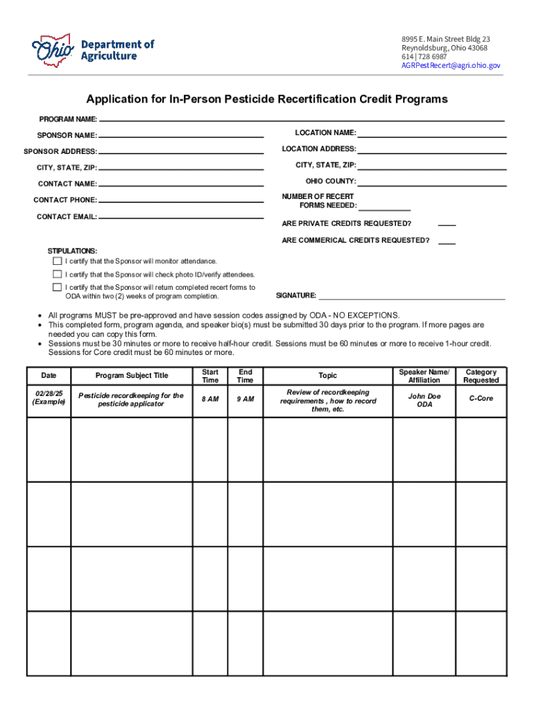 Get the free Application for in-person Pesticide Recertification Credit Programs - agri ohio