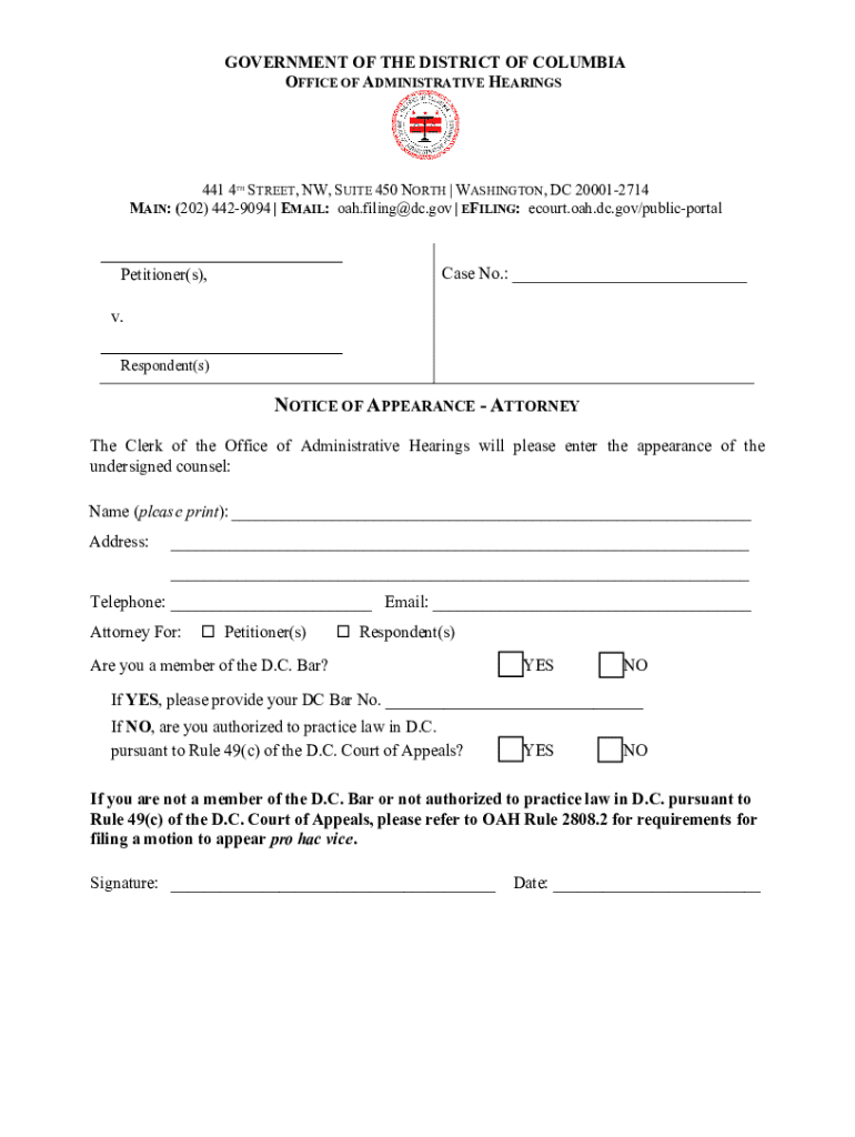 Get the free Notice of Appearance - Attorney
