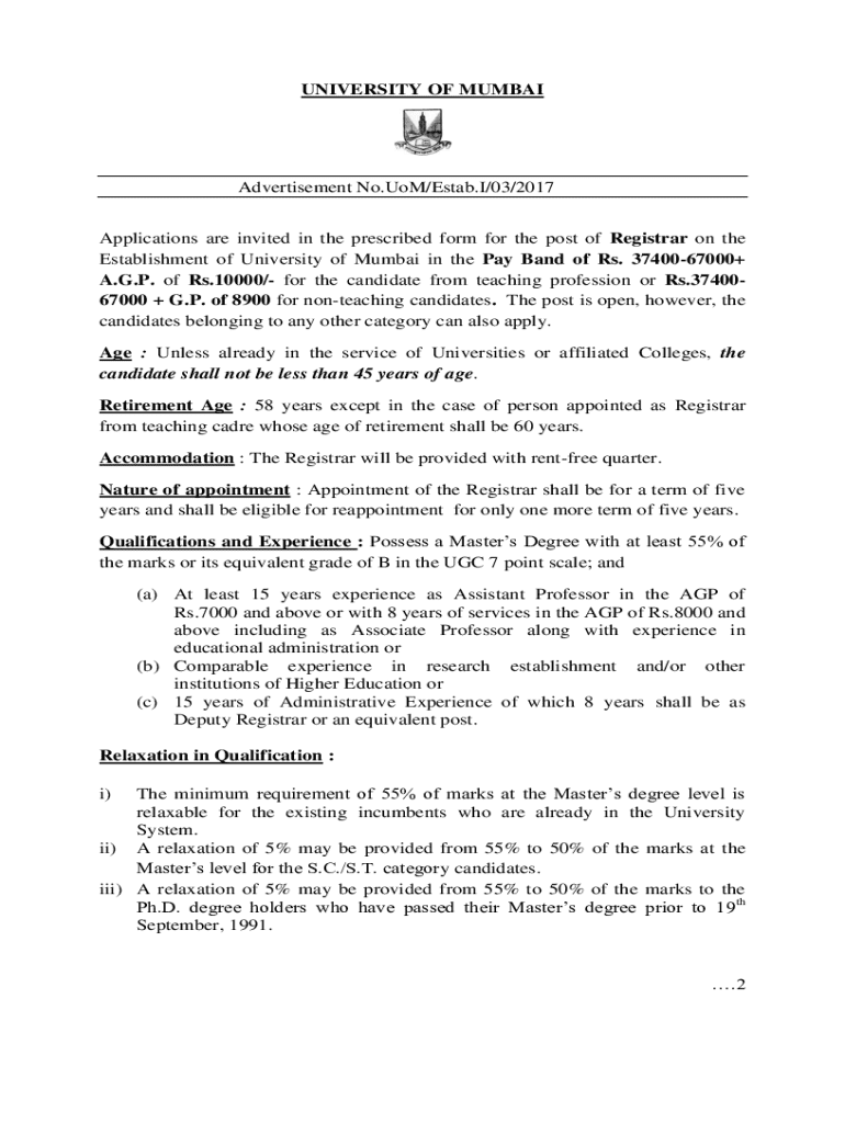 Get the free Advertisement No.uom/estab.i/03/2017 - mu ac