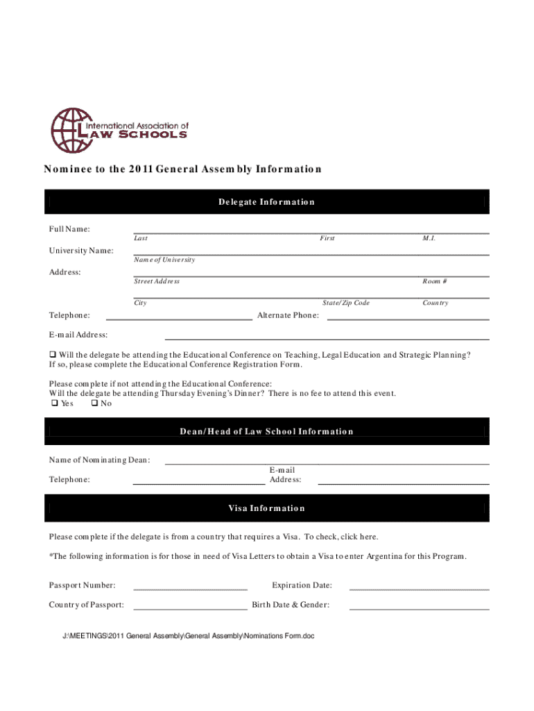 Get the free Nominee to the 2011 General Assembly Information
