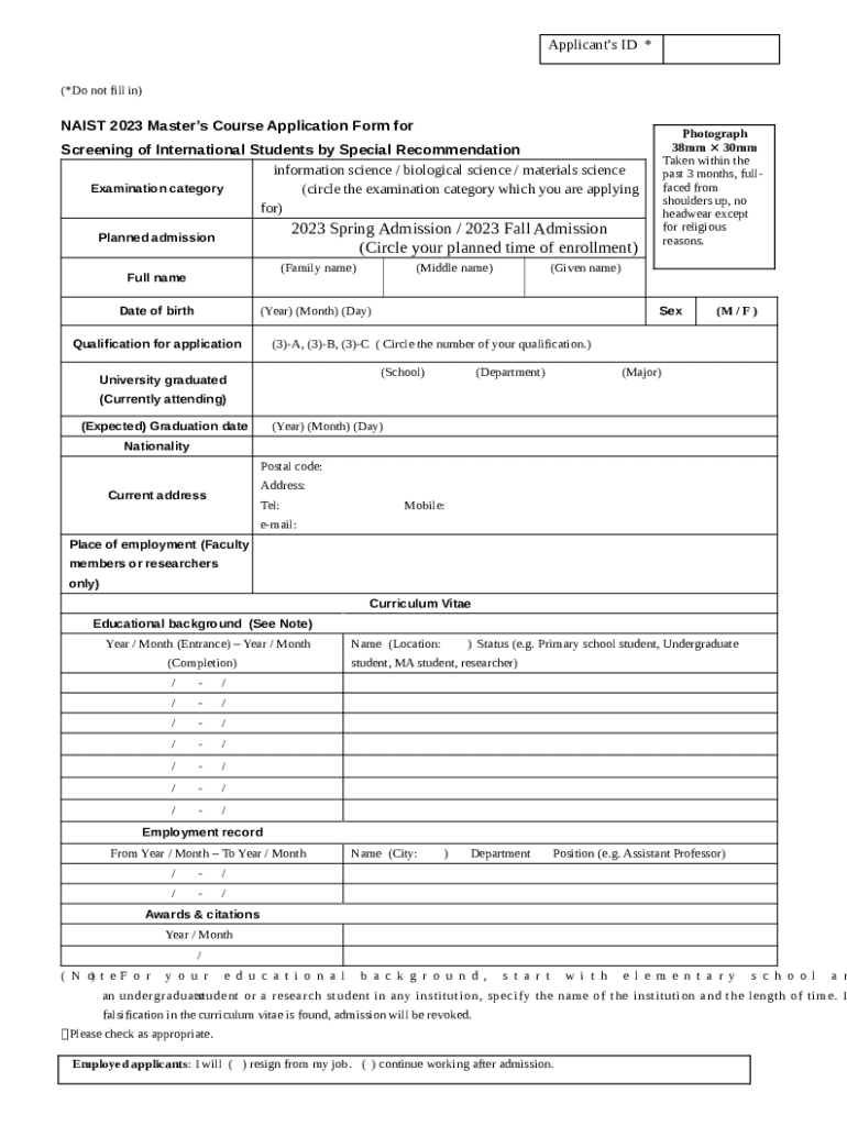 The NAIST 2023 masters course form consists of several sections, each requiring careful attention to detail. Start with the personal information section, where accuracy is crucial, as it forms the basis of your identity within the application process.