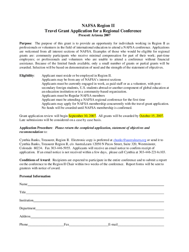 Get the free Nafsa Region Ii Travel Grant Application