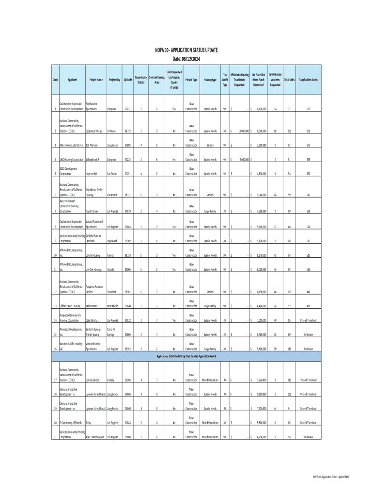Get the free Nofa 30 - Application Status Update