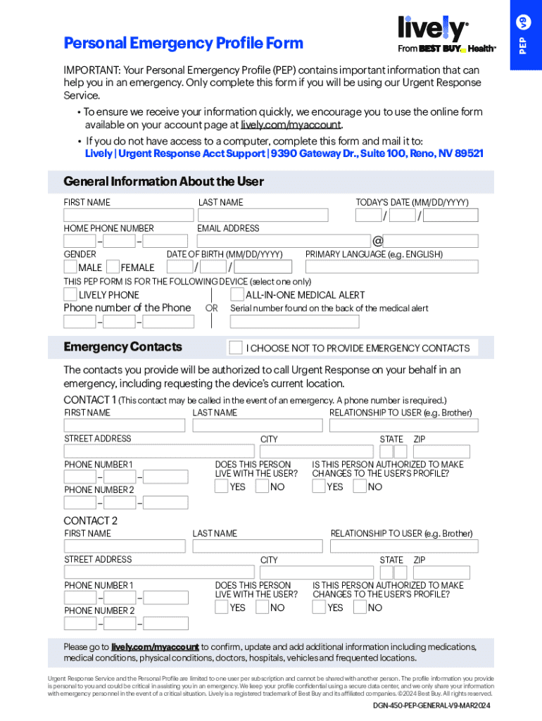 A Personal Emergency Profile (PEP) is a tool designed to provide crucial information about individuals in emergency situations. It serves as a detailed record of essential personal and medical details that can be accessed quickly by caregivers, emergency responders, or family members when immediate decisions need to be made.