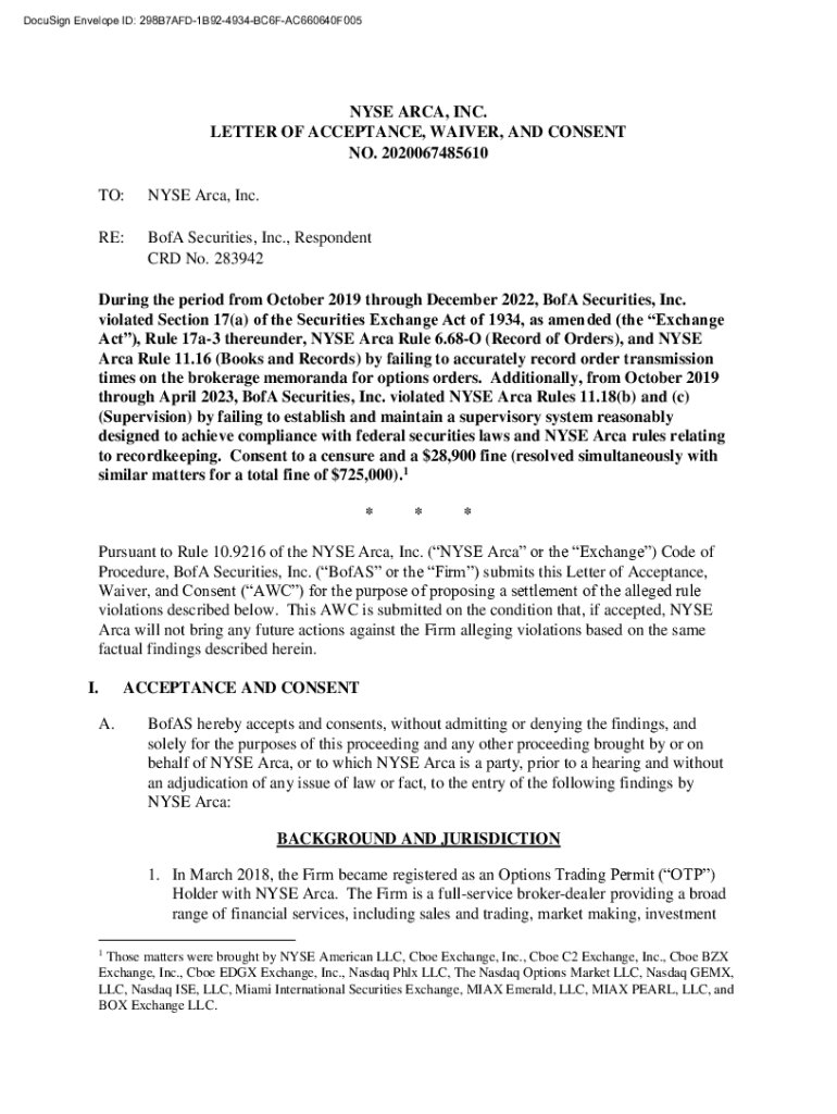 Get the free NYSE Arca, Inc. RE: BofA Securities, Inc., Respo