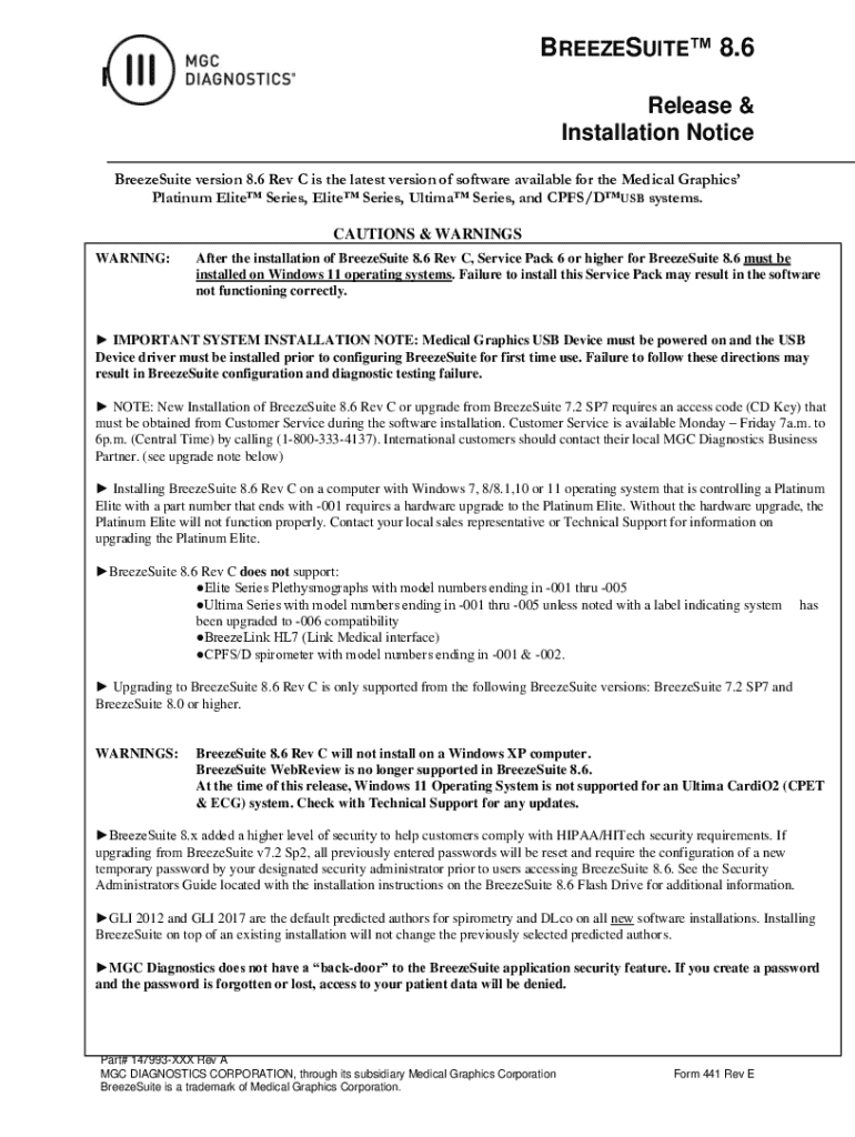 Get the free Breezesuite™ 8.6 Rev C Release & Installation Notice