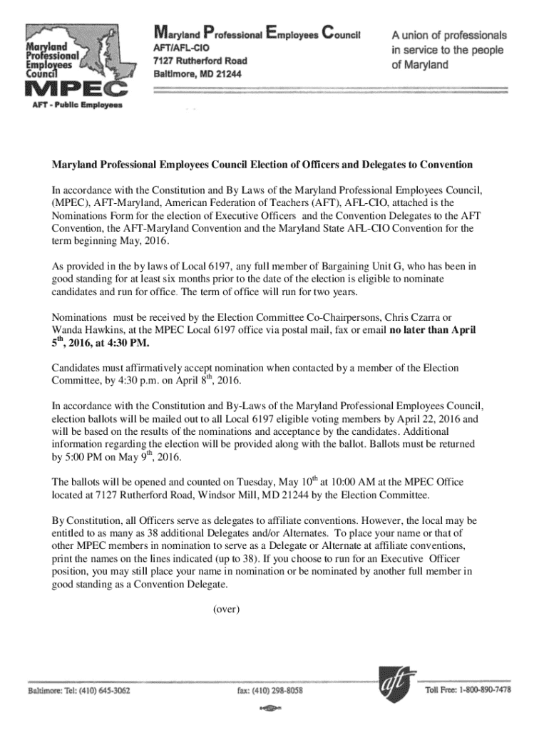 Get the free Nominations Form for Mpec Elections - mpec md aft