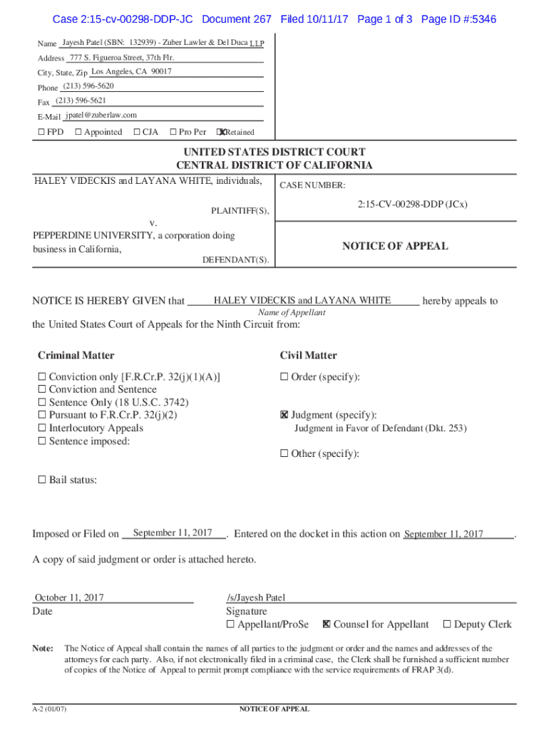 Get the free Notice of Appeal and Judgment Document - files eqcf