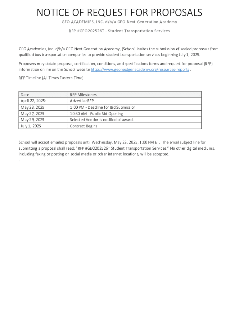 Get the free Notice of Request for Proposals