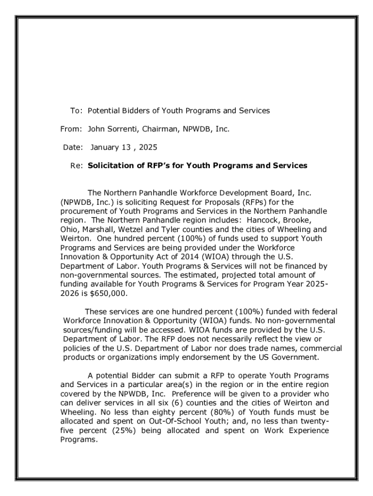 Get the free Notice OF Request for Proposals (RFP) for One-Stop ...