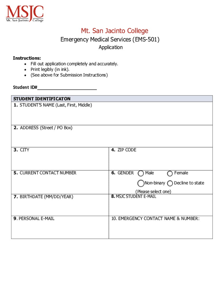 Each section of the EMS-501 has critical fields to fill out accurately. Here’s a detailed breakdown: