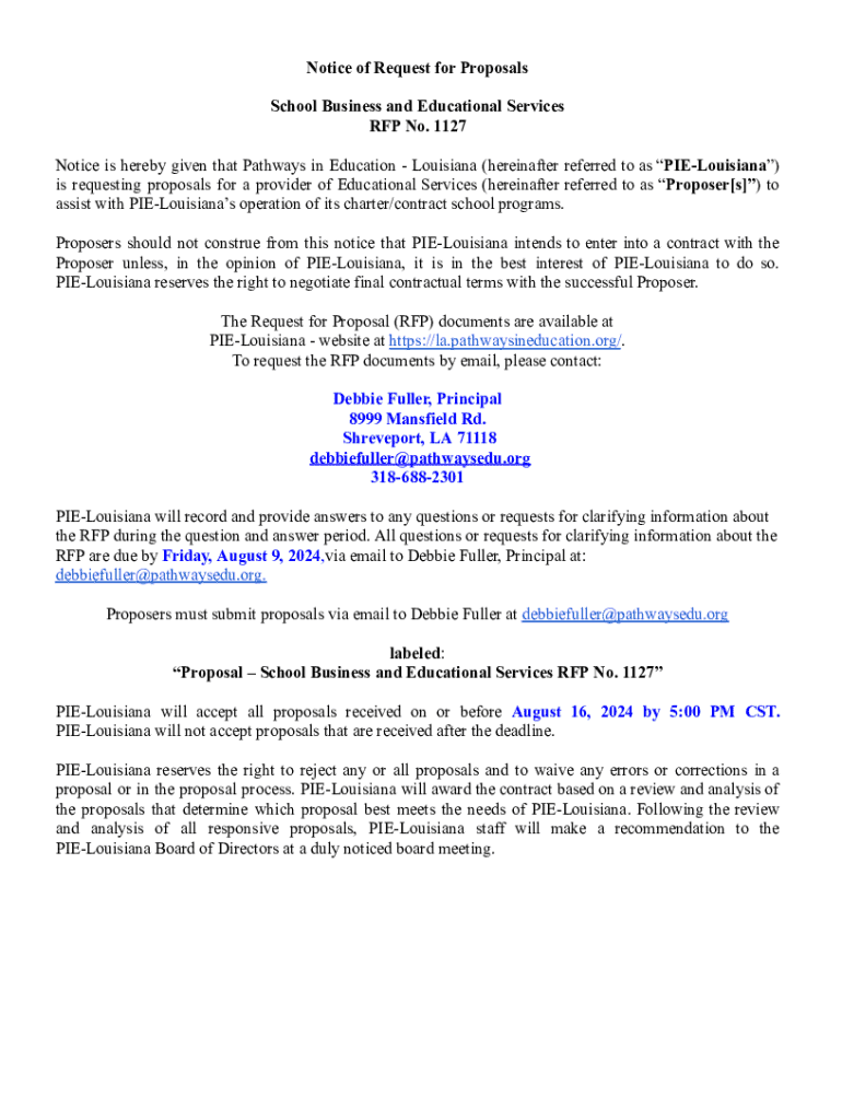 Get the free Notice of Request for Proposals