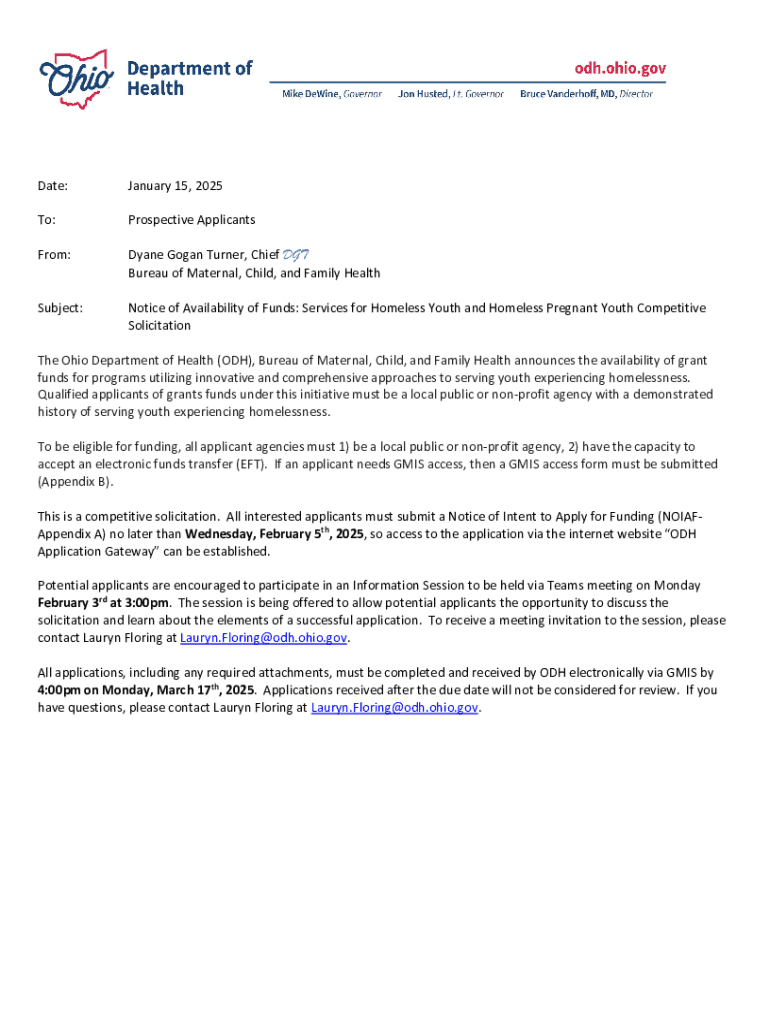 Get the free Notice of Availability of Funds: Services for Homeless Youth and Homeless Pregnant Y...