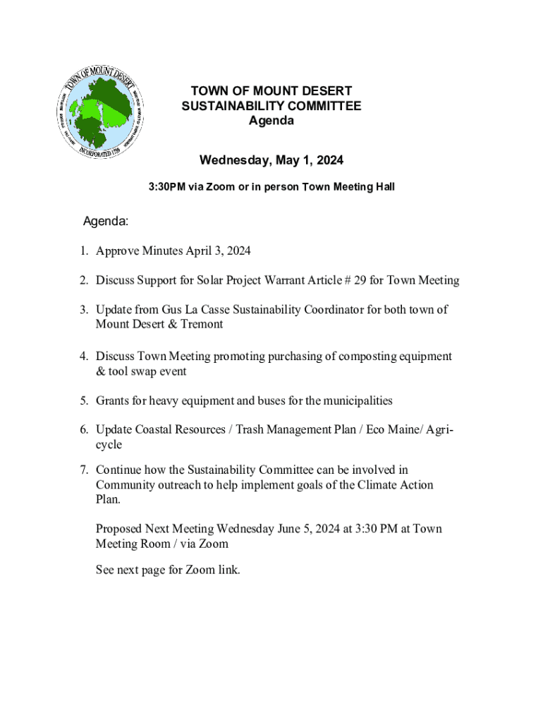Get the free TOWN OF MOUNT DESERT SUSTAINABILITY COMMITTEE ...