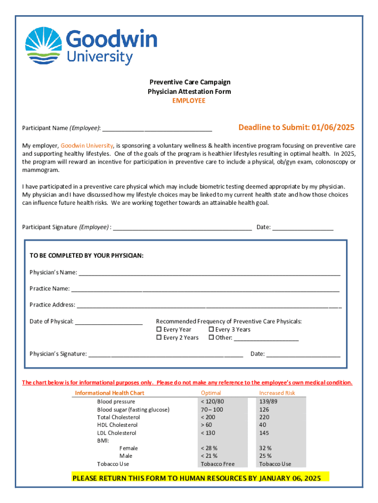 The preventive care physician form is a critical tool utilized in the campaign. Its primary purpose is to collect essential health information from individuals to tailor preventive care strategies. This data-driven approach allows healthcare providers to recognize risk factors and develop customized care plans for their patients.