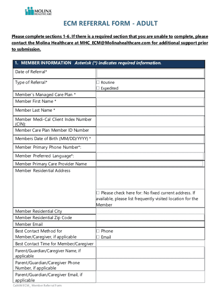 Get the free Enhanced Care Management (ecm) Adult Member Referral Form