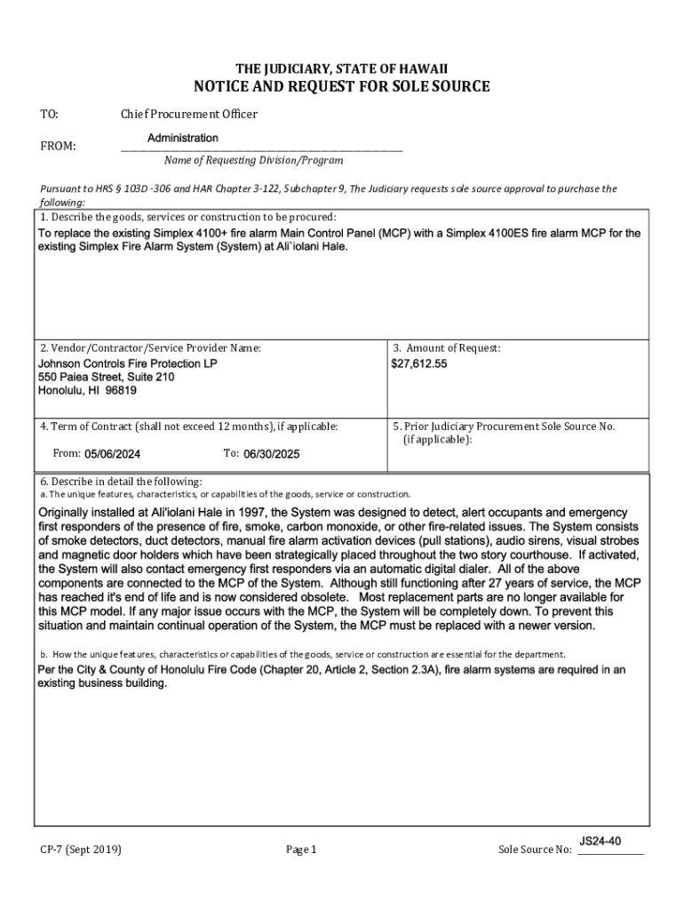 Get the free Notice and Request for Sole Source