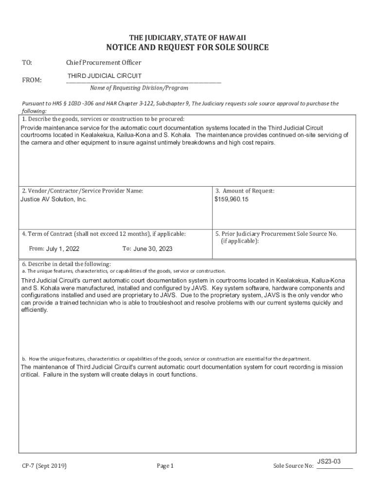 Get the free Notice and Request for Sole Source