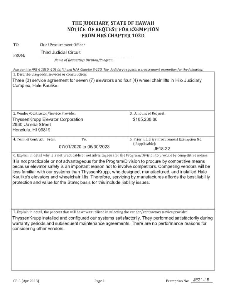 Get the free Notice of Request for Exemption From Hrs Chapter 103d