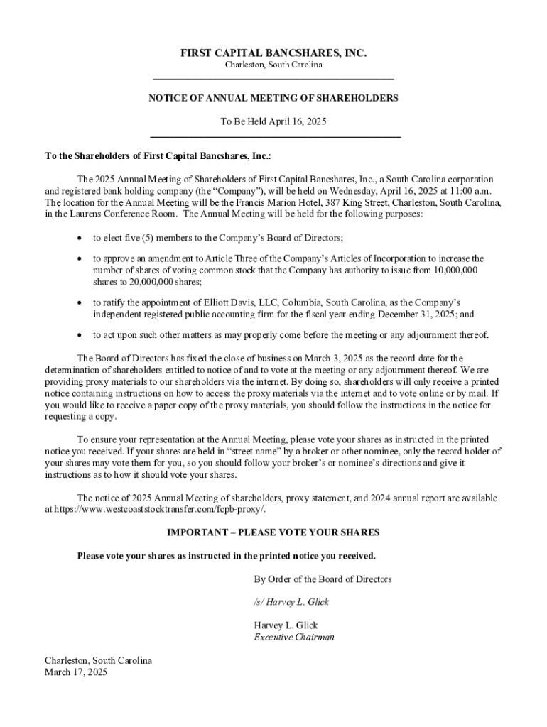 Get the free Notice of Annual Meeting of Shareholders