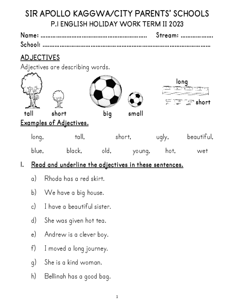 Get the free P.1 English Holiday Work Term Ii 2023