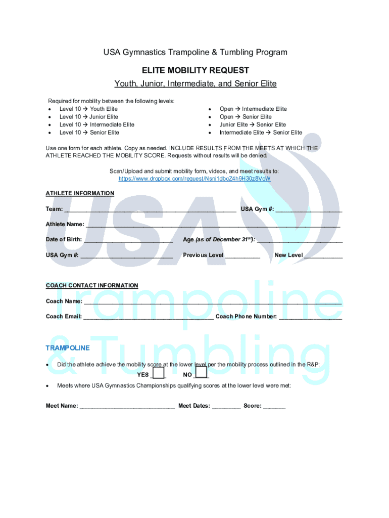 Get the free Usa Gymnastics Trampoline & Tumbling Program Elite Mobility Request
