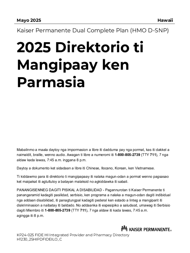 Get the free Kaiser Permanente Dual Complete Plan Directory