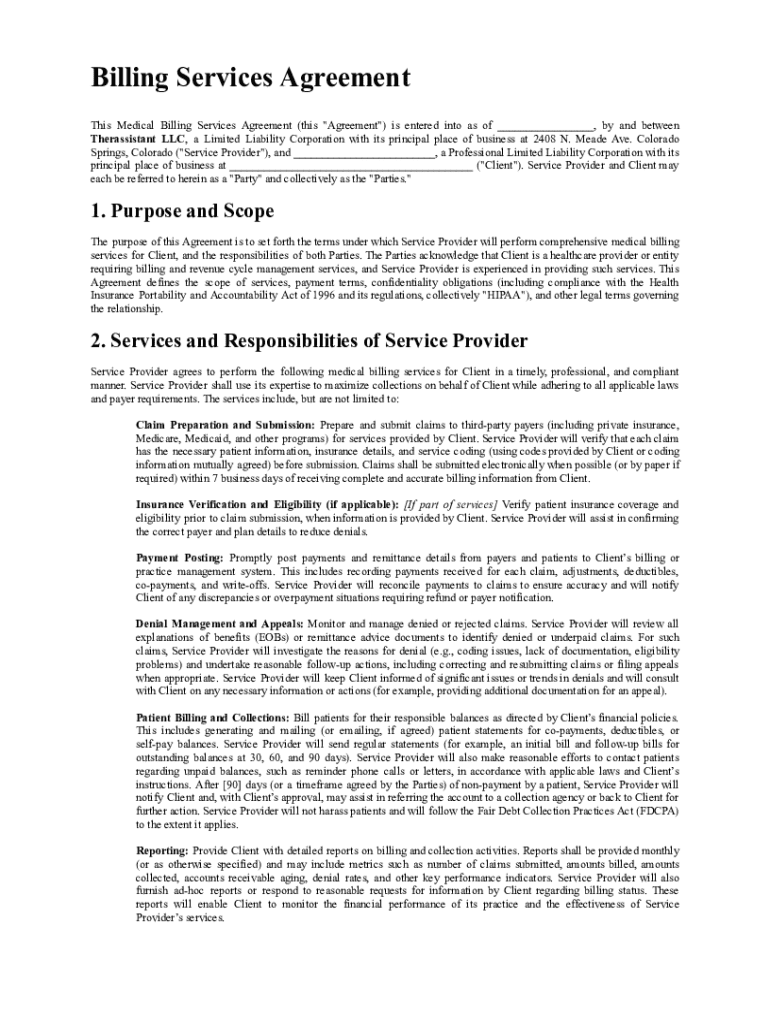 Get the free Billing Services Agreement