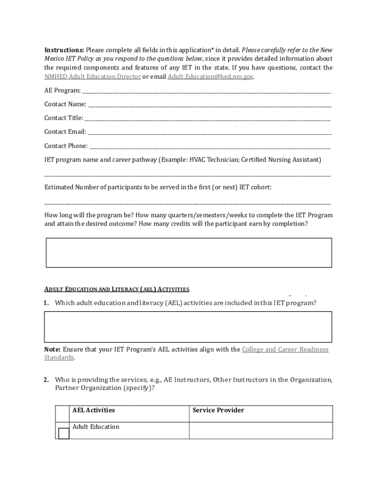 Get the free New Mexico Integrated Education and Training (iet) Application